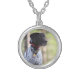 I chose gold plated so that the metal would not react with my skin oils and perspiration. But, I changed the necklace from the gold plated one to a sterling silver. My skin cells will tarnish the silver. But it will not look as bad if some portion of the gold plated necklace somehow became compromised. Zazzle did a find job turning the picture into a pendant for me. As you can see, the colors and the printing of the final product, match the preview. The picture I took is not very clear. But I am pleased with the product I received.
