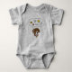 I love this onesie, it's adorable! The material is amazing so soft and the color is a perfect sky blue. When my daughter-in asked me to help with her Baby Shower, I was thrilled. It was co-ed & the theme was Cookie Monster. I had no idea that the whole world was after that big blue Monster. Thank goodness for Zazzle, I got most of the party supplies here. Then I found this onesie! They made my customization so easy. The colors are awesome. I wrote the word "Loved" across the bottom of the Cookie Monster in red letters when I was putting it together. I saw the preview & liked it. But to see it in person, OH, it was fantastic, they do exceptional work! I am so glad that I found this onesie/bodysuit. The production time and shipping were exactly what I was told, which made it easy to plan the party. Packaging was nice as well. If you are looking at this product, look no further, I highly recommend it! I'm certain that I'll be back to "design" whatever my new Grandson "needs.". The printing on the onesie/bodysuit is crisp, and clean. With perfect colors that blend well with the blue background of the basic material. We are so happy with how it came out.