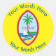 This custom sticker is decorated with the Guam Coat of Arms that can be customized with a choice of words above and below that allow you to personalize it with the name of a person, place, position, etc.