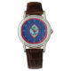 I like the illustrative watch with the lady on it. It is a great reminder that I am blessed and it has a very sturdy leather band. The colors are true and vibrant. Love the color of the Leather also. Very nice.