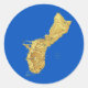 A map of Guam is centered over a flag-color background on this sticker. Stick up for Guamanian values!