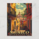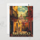 A captivating travel postcard showcasing the vibrant city of Guanajuato, Mexico. The poster features a colorful street scene in an old town, with pastel-colored buildings, potted plants on balconies, and soft sunlight bathing the scene. This charming image captures the quintessential Mexican atmosphere of quaint streets and traditional architecture.