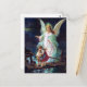 This is a digitally enhanced print derived from a charming painting of a guardian angel watching over two children walking over a bridge at night.