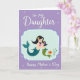This design shows a tender underwater moment between two mythical aquatic figures, a taller guardian and a smaller companion, held close in the center as if sharing a quiet promise of friendship and love ❤️. They sit within a pale blue, curving frame that feels like a sheltered sea cove, set against a soft lavender background dusted with tiny white stars and dots. The larger figure has flowing dark hair with a bright yellow flower tucked in, leaning in to kiss the smaller figure’s forehead with a gentle, protective gaze. Her lower half becomes a teal fin filled with swirling, sea-texture patterns, while the smaller figure’s dark hair is dotted with little colorful blossoms as they cradle a small pink shell. A cheerful orange fish drifts nearby and a few slender green sea plants rise from the bottom, adding a calm sense of movement 🌼. White lettering appears around the central image, arcing along the frame so it lightly borders the scene without covering the characters. The pale blue frame has rounded edges, and the teal and green fins show curling motifs that repeat in delicate lines.