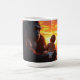 Gorilla holding baby at sunset, emotional art on coffee mug, symbol of strength and tenderness, perfect gift for animal lovers and dreamers.