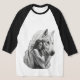 I bought the Men's Basic 3/4 Sleeve Raglan T-Shirt, White/Navy. It arrived on time for a gift and is of a great quality and fits perfectly! So cute! Zazzle has done it again! The printing was clear and filled in solidly.