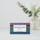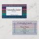 A business card for an import gift shop or store. This card features a traditional Guatemalan weave as the background. The textile is woven in multi colors and is very intricate.