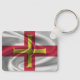 Keychain with the flag of Guernsey in wavy fabric style design. This design features the Guernsey flag colors and design with a beautiful waving material textured effect. This flag design is a great way to show you are proud to be from Guernsey.