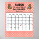 Cute teddy bears with blue bibs on orange and white polka dot pattern for Baby Shower game.