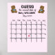 Cute teddy bears with blue bibs on pink background for Baby Shower game.