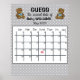 Cute teddy bears with blue bibs on gray and white polka dot pattern for Baby Shower game.