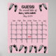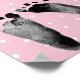 Black baby footprints on pink and white polka dot background for Baby Shower game.