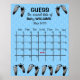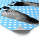 Black baby footprints on blue and white polka dot background for Baby Shower game.