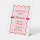 Elevate your cherry baby shower theme with this Personalized Guess How Many Cherries Cherry On Top Pedestal Sign. Perfect for a berry sweet baby shower theme or February baby shower themes, this charming game adds fun and elegance to your cherry on top baby shower theme. Personalize it to make your event truly unique!