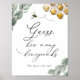 Bee themed sign for Baby Shower Game - Guess how many honeycombs! Framed by watercolor honeycombs and eucalyptus greenery. Customize with your text if desired.