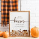 Guess How Many Kisses Poster. This elegant 'guess how many kisses' bridal shower poster features a beautiful frame of hand-painted boho watercolor burnt orange and terracotta leaves, cream and beige dahlias, and lovely rust-colored roses on a white background. Find matching items in the Autumn Romance Bridal Shower Collection.