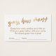 These subtle cards are appropriate for both baby and bridal showers. Using a modern handwritten script font, I created a graphic overlay that reads "guess how many". It's been embellished with a faux gold foil effect. Below that are the instructions for the game and another field for game players' guesses and names. The back was left blank. The background of these cards is editable white; feel free to change that to a different color if you prefer. // 100 // Designed by Melody Watson for Paper Muserie.
