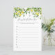 This summer lemon themed "Guess the Kitchen Item" card is easy to personalize using the provided Zazzle template. Whether you're throwing a bridal shower for a friend or family member, celebrate the lovely bride-to-be finding her main squeeze with this citrus-inspired game card for your guests to fill in. Please contact the designer for any variations of this design or for any matching products.