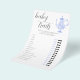 An elegant baby tea party / baby shower "guess the baby's features" game sheet featuring a sweet China tea set in periwinkle blue and layered with white lace (this is a digital effect), with elegant calligraphy.