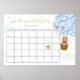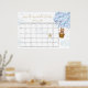 Featuring a cute teddy bear cub in a blue hot air balloon, this chic fun baby shower guess-the-due-date poster can be personalized with your special message and baby name. Use the customization tool to move the month text boxes and 'due date' star to fit your dates. Designed by Thisisnotme
