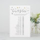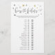 This baby shower game card features a script modern font on white background with gray and gold stars, perfect for a baby boy, baby girl or a surprise! Use this card for your gender reveal party!
