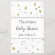 This baby shower game card features a script modern font on white background with gray and gold stars, perfect for a baby boy, baby girl or a surprise! Use this card for your gender reveal party!
