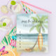 Baby on Board! Baby shower invitation - perfect for a summer baby shower. Beach theme. Watercolor design has a ocean and beach scene with surfboard, palm tree and summer hat.