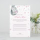 Pink Snowflake Elephant Winter Girl Baby Shower Game Card.