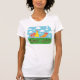 The material is a great quality that is hard to find with most tee shirts. Fabric was not see-through or thin at all, but was also very soft and comfortable. The shirt description states that it runs a little small, so I sized up one size for a perfect fit! I would definitely buy this type of tee shirt again because I love the fit and high quality fabric that I cannot find anywhere else. The printing was perfect and just as pictured. Loved the cute quote and really enjoy the tee in both the quality and design. I love quirky typography designs and funny quotes and I am extremely pleased with the overall quality and value I get at Zazzle!