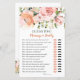 This design features a Baby Shower Game "Guess Who - Mommy or Daddy" in Watercolor style with apricot pinkish roses and greenery foliage