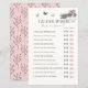 This elegant "guess who bride or groom?" bridal shower game card features a cream background with a piles of books, butterflies, a flower bouquet, teapot and teacup in watercolor. The reverse side features a pink background with floral pattern. Personalize it for your needs. You can find matching products at my store.