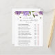 Guess Who Mommy or Daddy Baby Shower game card. Featuring purple lilac flowers and swirling bees. Matching items available in the Adore Paper Co. shop in Zazzle.