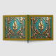 Beautiful gold leaves set against a teal background cover this elegant guest book.