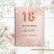A guestbook for a feminine and glamorous 18th birthday party. A stylish rose gold faux metallic looking background with faux glitter dust. Add your name, text. Number 18 is written with a balloon style font.