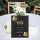 For an elegant 60th birthday party. A black background, decorated with balloons. Number 60 is written with a trendy balloon style font, leopard pattern. Personalize and add a name and a date. The word birthday is written with a modern hand lettered style script with swashes.