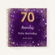 A guestbook for a feminine and glamorous 70th birthday party. A stylish purple background with faux purple and rose gold sparkles. The purple color is uneven. Personalize and add your name and a date.