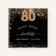 Guest book 80th birthday black gold glitter name
