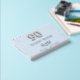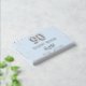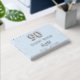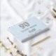 A stylish light blue background with faux silver glitter, sparkles and number 90 written with a ballon style font. Add your name, date. Real silver foil text, except large balloon style number 90