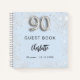 A stylish light blue background with faux silver glitter, sparkles and number 90 written with a ballon style font. Add your name, date.