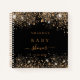 A stylish black background with dark faux gold glitter dust. Personalize and add a name and the date. Can be used as guest book, planning the party or as a party favor.