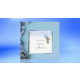 A white background. Decorated with a teddy bear baby boy holding a balloon, blue faux glitter dust. Personalize and add a name.