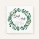 A white background color. Add a name and a date. Decorated with a watercolored eucalyptus greenery wreath. The text: Guest Book is written with a modern hand lettered style script.
