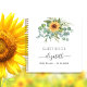 A white background. Decorated with sunflowers, eucalyptus greenery. Add a name, date.