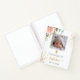 For an elegant baptism. A chic white background, decorated with a rose gold and blush pink rose, eucalyptus greenery, faux gold glitter dust and a golden cross. Personalize and add a square sized photo on the front, the name of the child and the date of the baptism. Black and golden letters.
