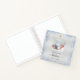 A faux silver metallic looking background, decorated with blue faux glitter dust and a golden cross. Personalize and add a square sized photo on the front, the name of the child and the date of the baptism.