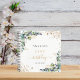 A white background color. Decorated with eucalyptus greenery, golden foliage and faux gold glitter dust. Add a name, age and a date.