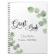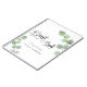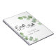 A white background color. Decorated with elegant eucalyptus greenery sprigs. Add a name and a date.