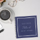A guest book for a 50th (or any age) birthday party. A stylish navy blue background and a white frame. Add your name, age, date. The name is written with a modern hand lettered style script.