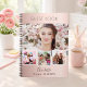 Create your own unique photo collage. Use four, 4 of your favorite photo. Personalize and a name and age/dates. A rose gold, blush gradient background, black text.