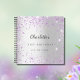 A faux silver metallic looking background decorated with purple, violet faux glitter dust. Personalize and add a name and date.